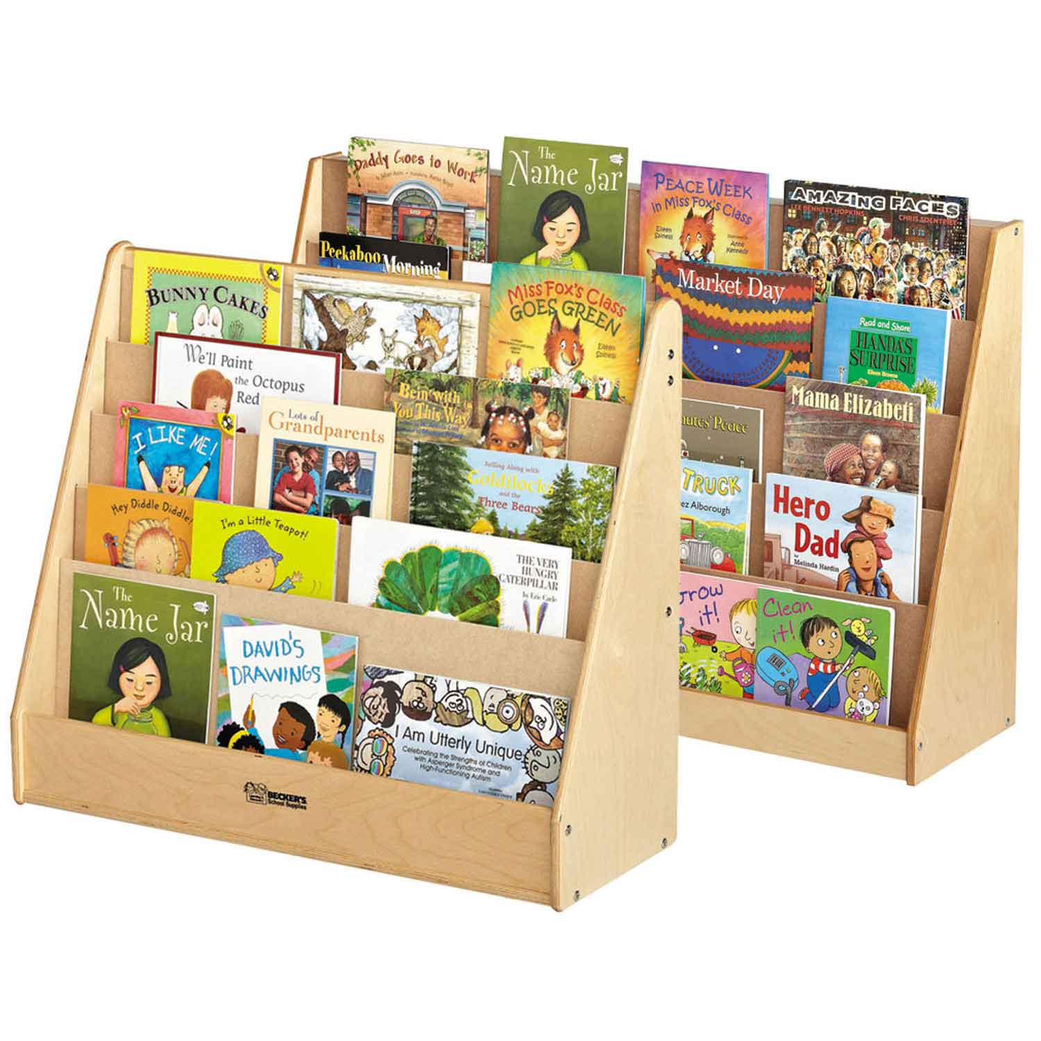 Traditional book storage at the perfect height for preschoolers. Lots of shelf space to hold many titles. In stock for quick delivery.