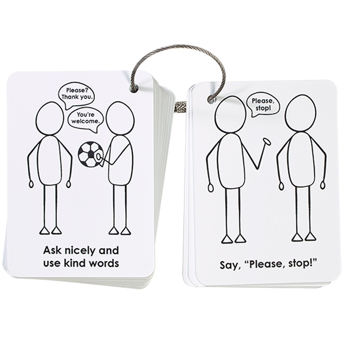 “I Choose” Solution Cards Set offers 34 quick and accessible problem-solving solutions with clear illustrations and simple text. Strategies address interoceptive, emotional, sensory and social challenges that are commonly encountered by young children. Includes 18 double sided cards on white plastic, 2½" x 3½". Ring included for organization and portability.