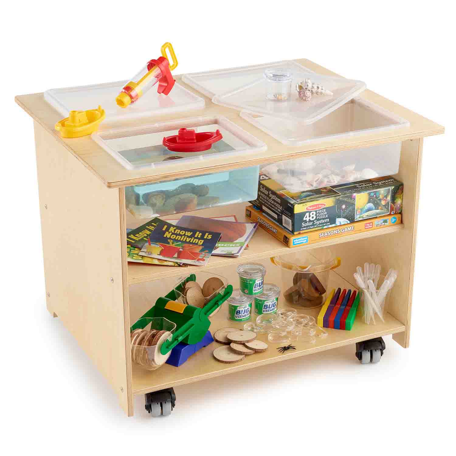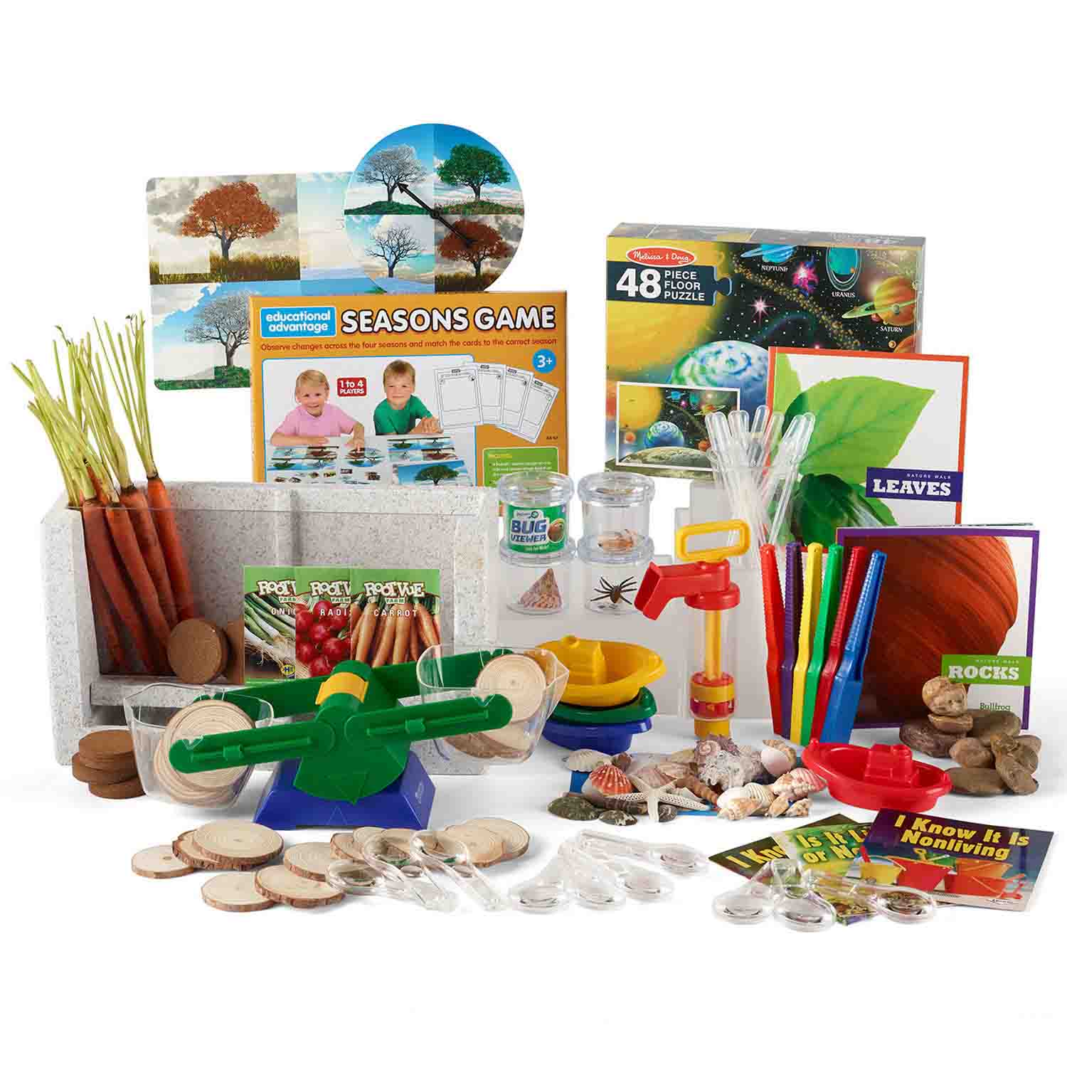 Your Science Center in a box! Achieve early learning science goals by providing tools, resources, and activities for scientific inquiry. Children will develop problem-solving and reasoning skills by actively engaging in predictions and investigations. Includes books, games, puzzles, science tools, natural materials and much more.