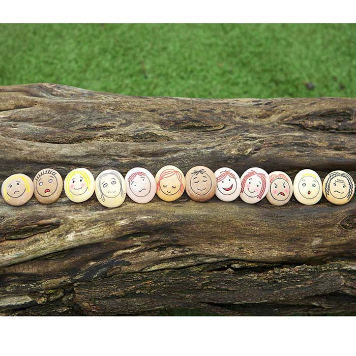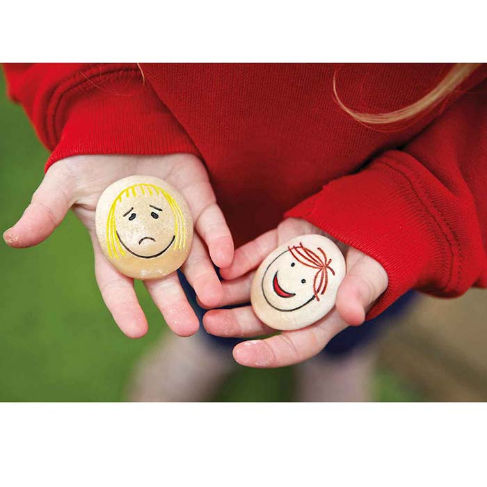 Large tactile pebbles make the learning more fun! The pebbles feature a wide variety of expressions to prompt heartfelt discussions.