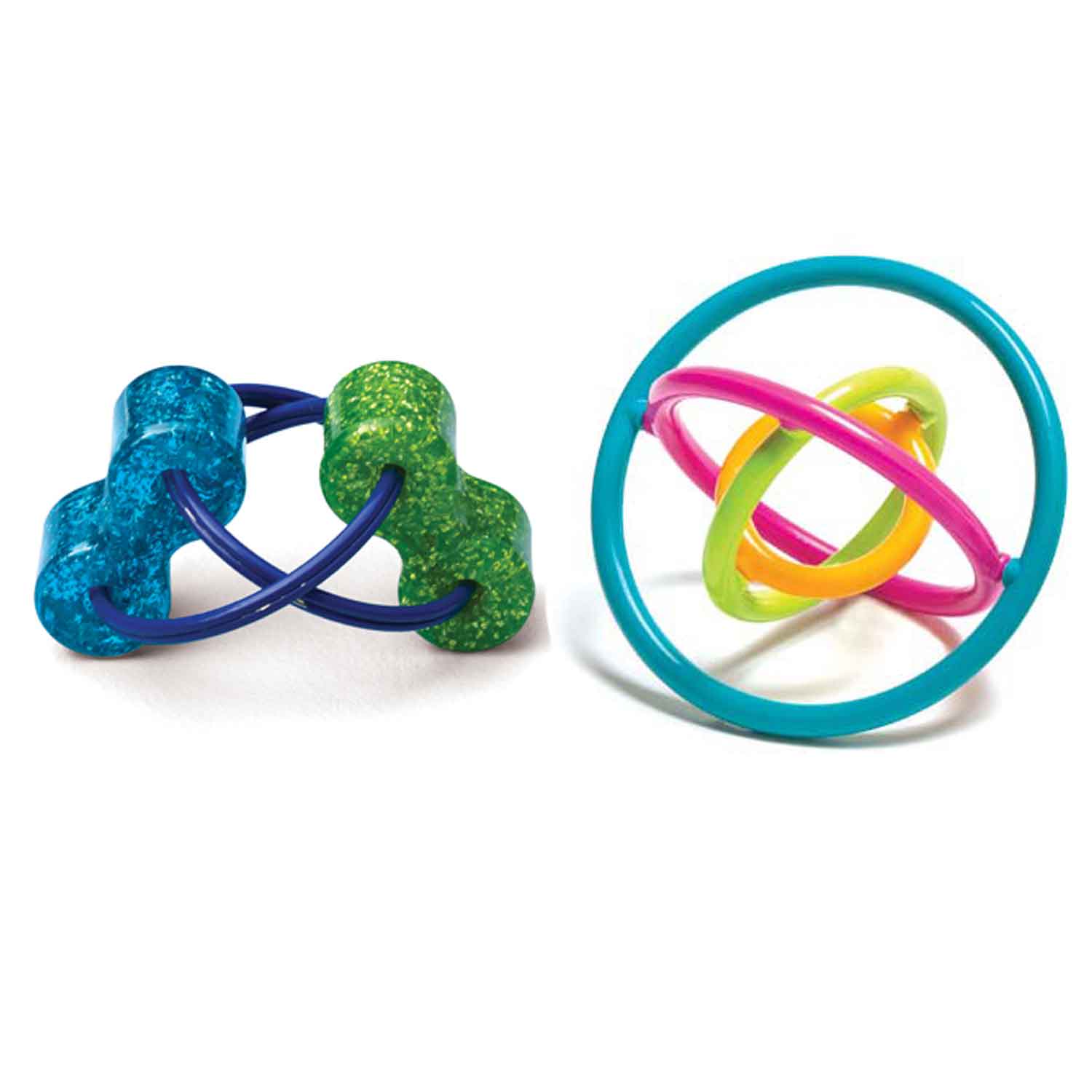 Fidgets toys are great for keeping little hands busy and for sensory play. This set of six fidget toys include three Gyrobis and three Loopeez. The Gyrobis allows children to spin colorful plastic rings in fascinating ways, creating fun shapes with the touch of a finger. The Loopeez are curved pieces that are fun and easy to manipulate and fit perfectly in one hand or two. Fidget toys offer sensory stimulation and help children relax and/or improve concentration and focus. Great calming toys for children with autism.