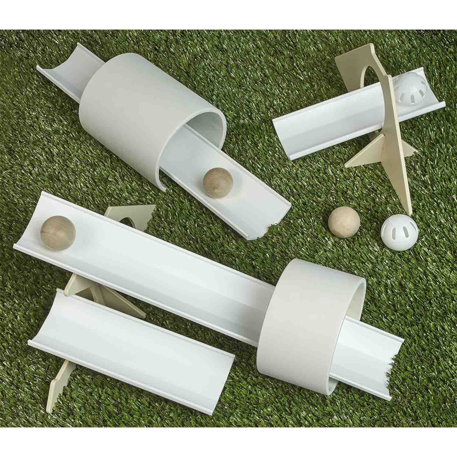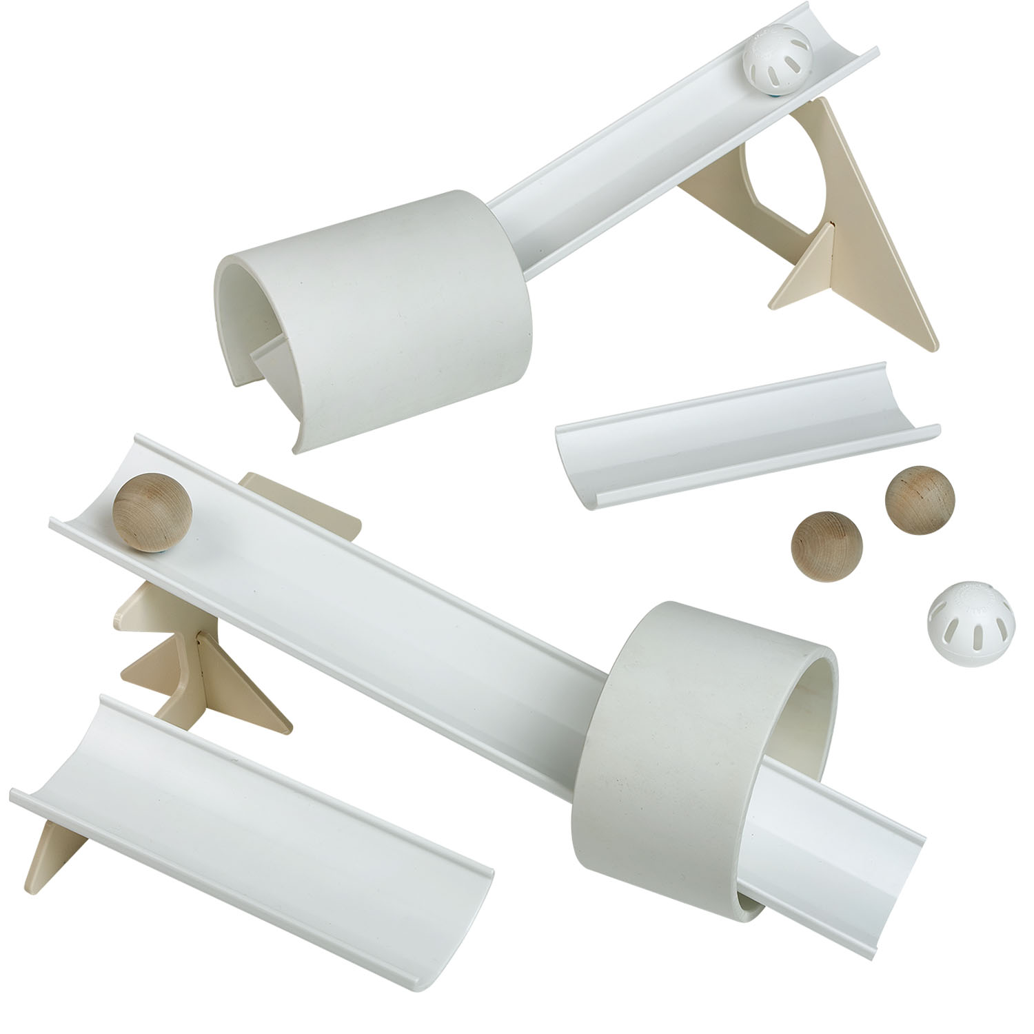 - Includes 4 ramps, 2 ramp stands, 1 tunnel, 1 tube, 4 balls & activity guide