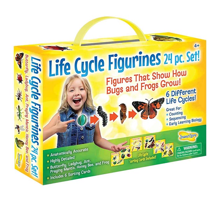 - 24 pieces includes 6 life cycle stages - Butterfly, Ladybug, Honey Bee, Praying Mantis, Ant and Frog