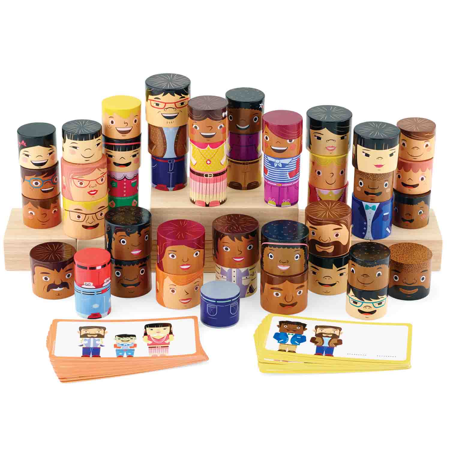 Create your own combination of family and friends with MyFamilyBuildersâ„¢ wood-crafted magnetic block sets. Celebrate diversity with figures that show a variety of skin tones and facial features. Just choose a head, body, and legs - the magnets hold the pieces together securely! A great multicultural family block set!