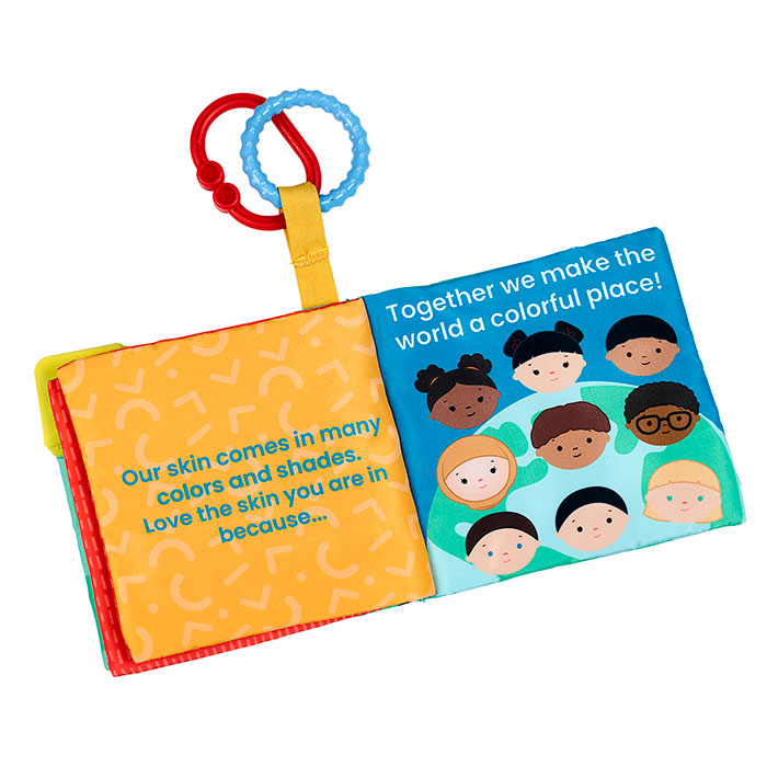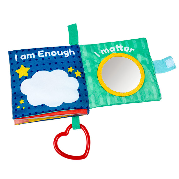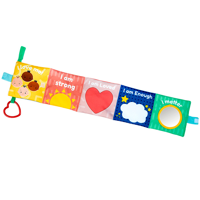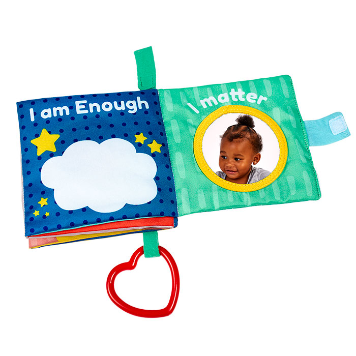 These soft interactive books engage babies’ senses through colorful patterns, crinkle pages, a mirror and teethers. Messaging includes positive affirmations to promote self-esteem, empowerment, diversity and inclusion through play.