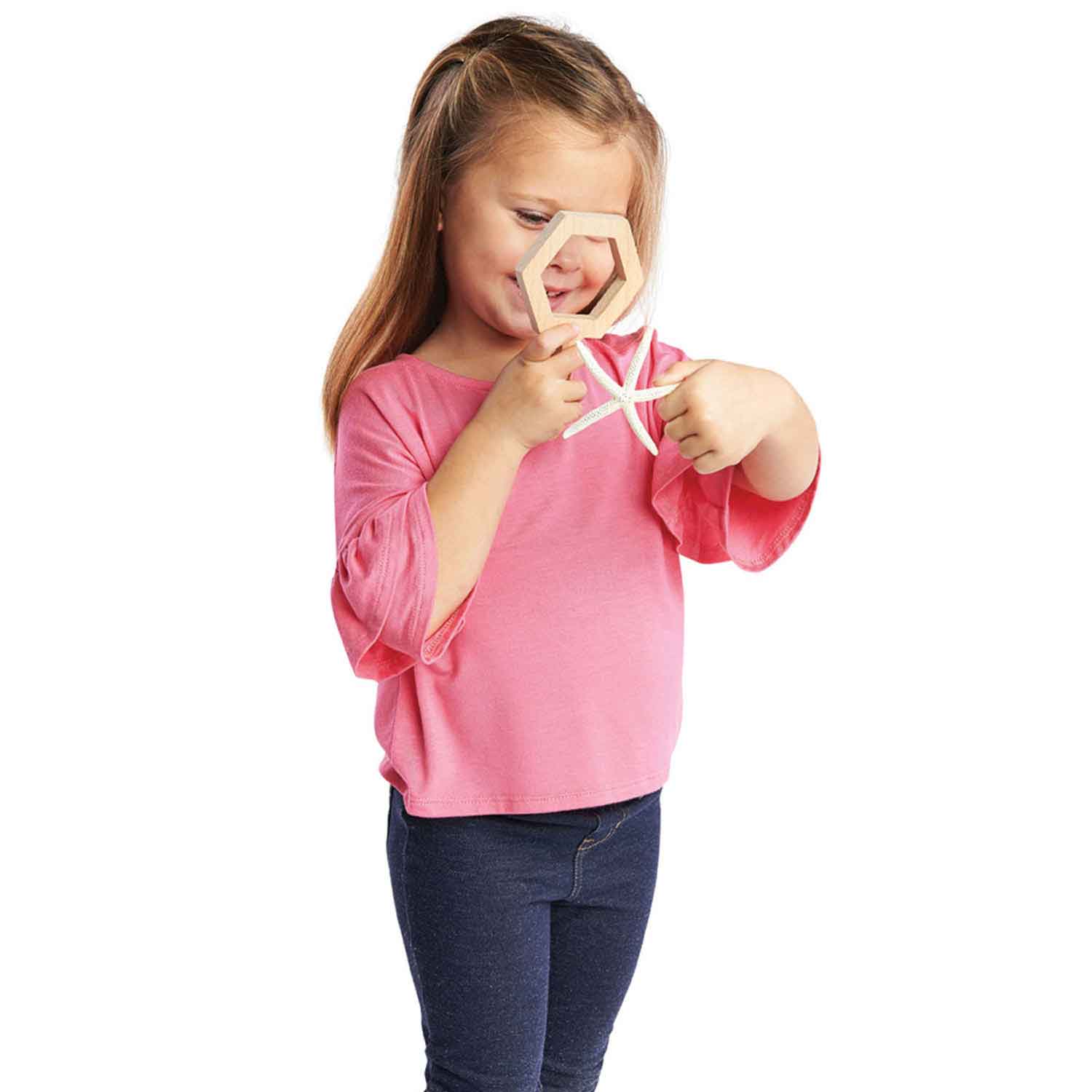 It’s like holding a window to the natural world. These viewers are simply empty frames that are a great tool for indoor and outdoor exploration. As children focus their attention on the details they see, their language and concentration skills will develop.