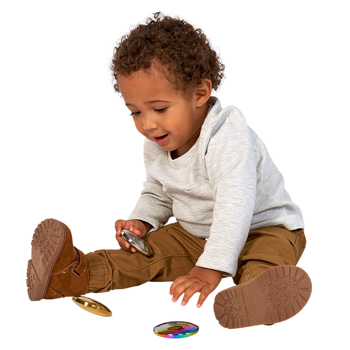 Stimulate the senses with the Sensory Reflective Sound Buttons. This set of 3 hollow, stainless steel disks offers a range of shaker sounds and reflections, perfect for engaging young minds. Their durability, easy cleaning, and stackable design make them a must-have for any sensory play experience.