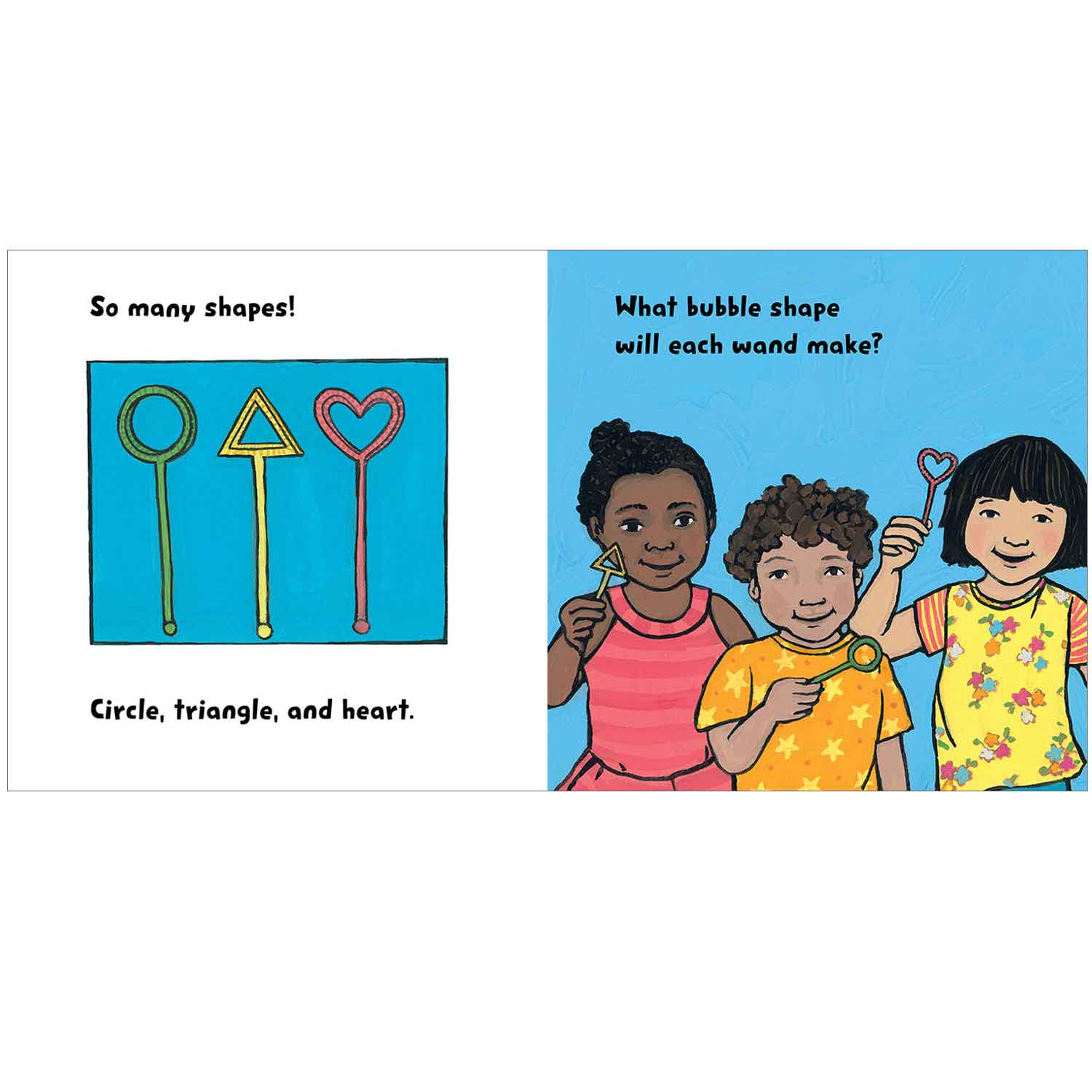 Manny and his friends Olivia and Mei blow bubbles in this playful introduction to geometry. Manny’s wand is a circle. Olivia’s wand is a square. Mei’s wand is a heart. What shape will their bubbles be? (Surprise! They’re all spheres.) View free activities and resources.