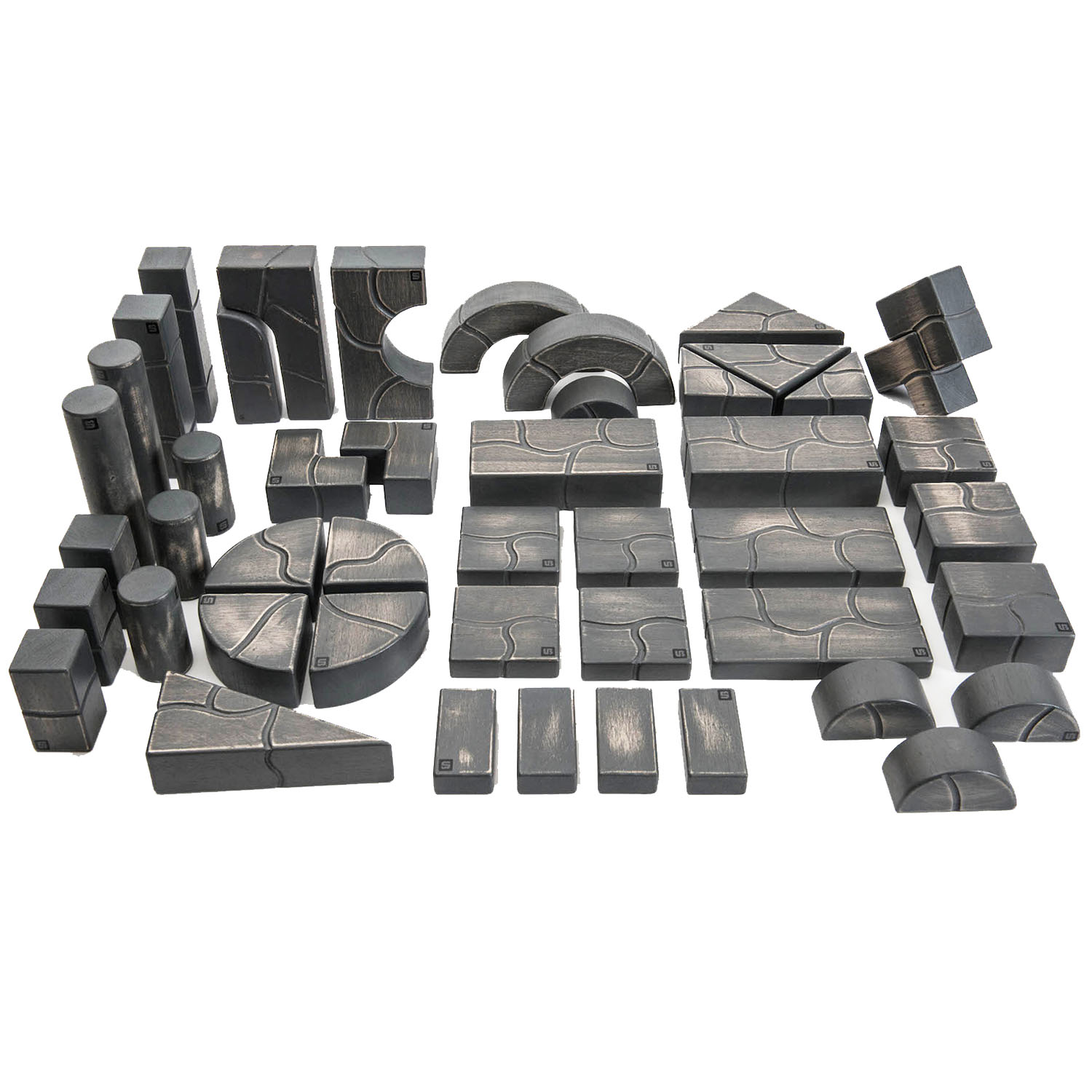 100-piece set includes half units, full units, pillars, columns, gothic arches, buttresses, corners, roman arches, half circles, circle curves, triangles, thin units and more—a total of 19 shapes!