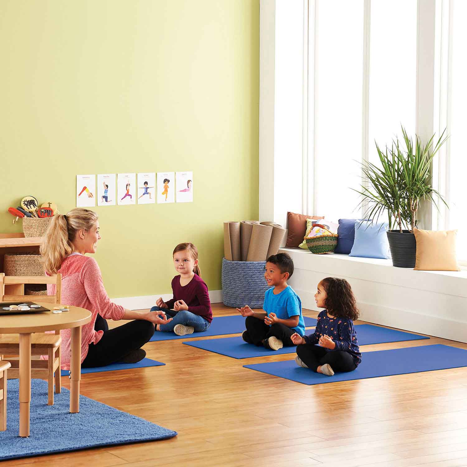 Perfectly sized for classroom yoga and safe distancing, this affordable mat offers just the right amount of traction for a beginner yogi. The non-slip surface provides safety and comfort, enabling beginners to maintain footing and stability. Suitable for home, schools, and special training events!